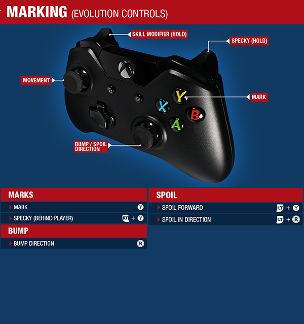 * Player Select – Tap to select a player close to the action. Hold and the right stick to select a player in that direction. You can also swap players during mark contests.