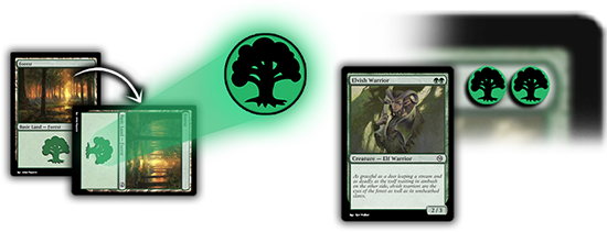 Les symboles imprimés dans le coin supérieur droit d'une carte vous indiquent le coût du sort.