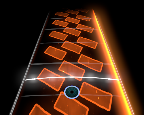 The wide orange notes are for the kick pedal—stomp on that bad boy when these notes cross the target.
