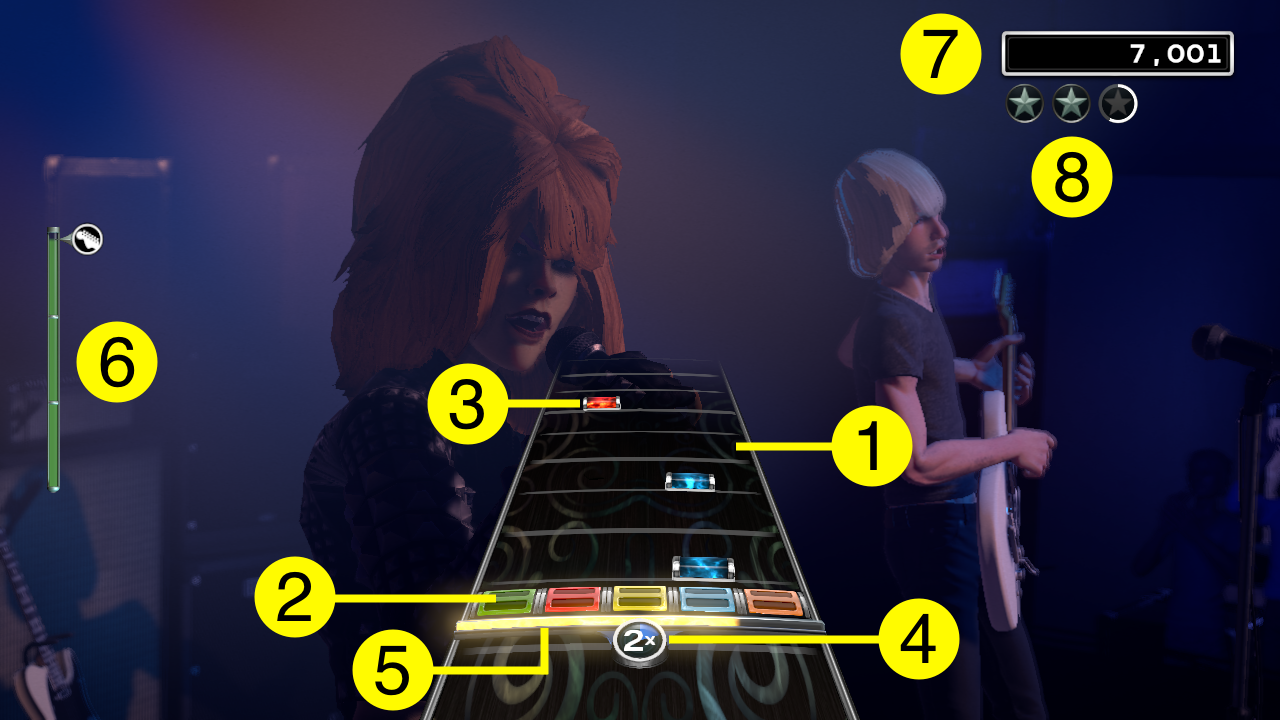 Build up your energy meter to go into Overdrive. Then you can whip the crowd into a frenzy, rack up some serious points, and even save yourself or a bandmate! While your energy meter drains, the crowd goes nuts and your points skyrocket.